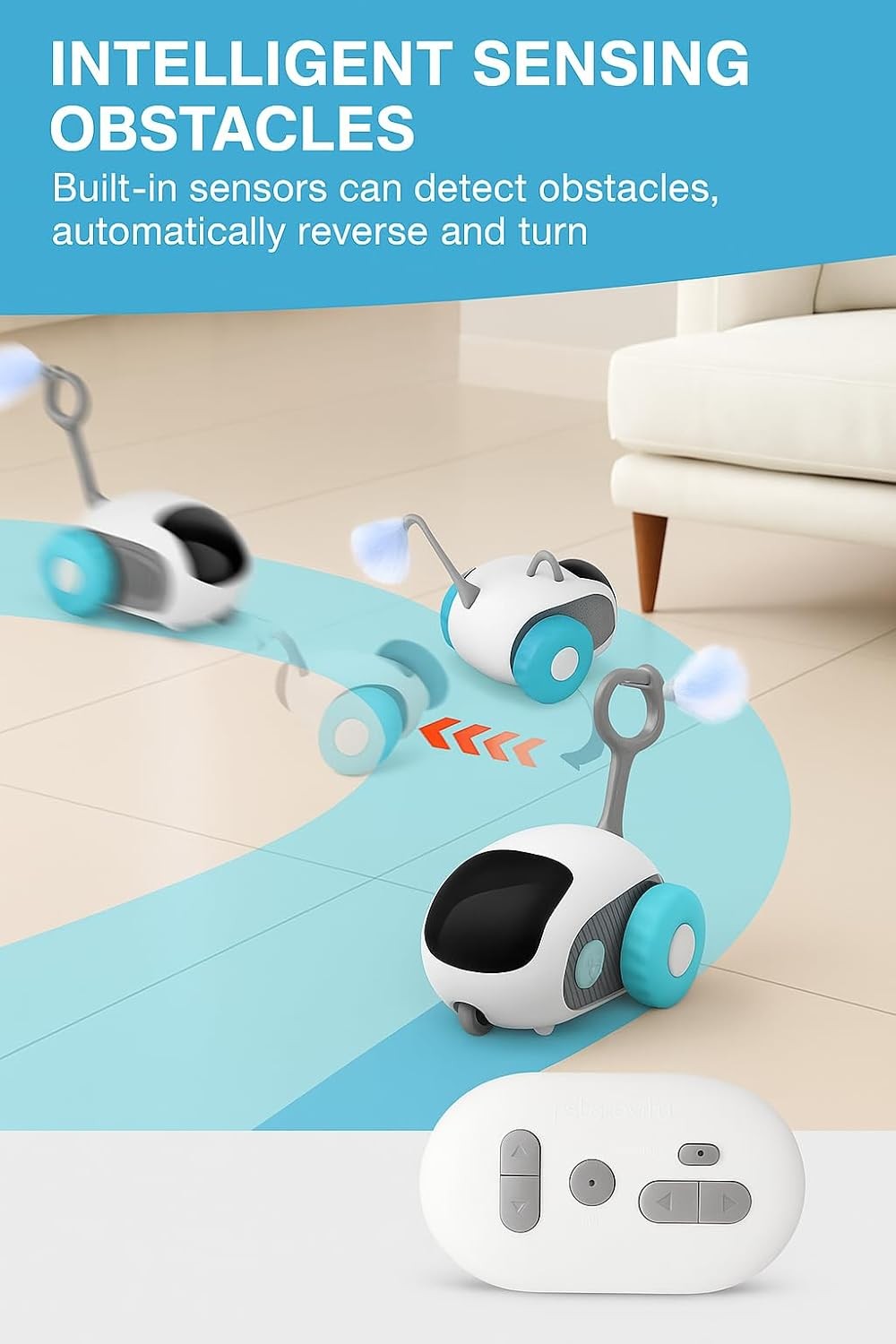 • Smart Obstacle Avoidance Technology – Built-in intelligent sensors help the toy detect and avoid walls, furniture, and obstacles, ensuring smooth and uninterrupted play.