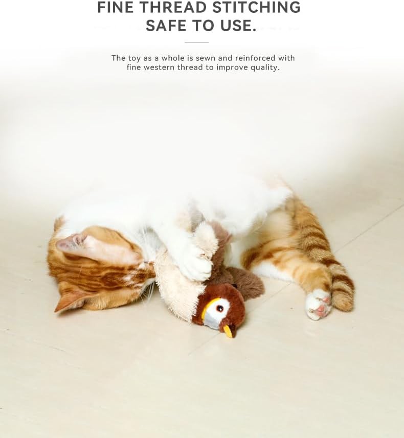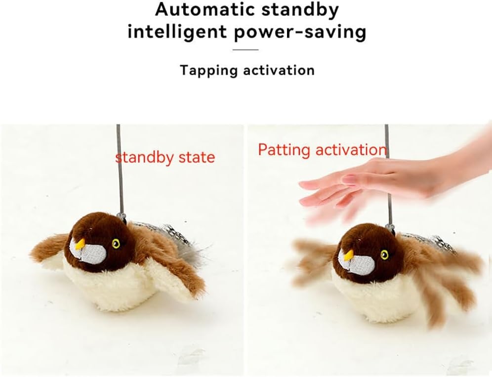 interactive electric sparrow designed to mimic the look and movement of a real bird. This high-quality toy features soft, durable materials that are safe for cats to bite, claw, and chase, making it the perfect choice for indoor play. The touch-activated flapping wings stimulate your cat’s natural hunting instincts, keeping them engaged for hours while promoting healthy exercise and reducing boredom or destructive behavior. With a built-in rechargeable battery and USB charging cable, you’ll never have to worry about replacing batteries, making it an eco-friendly and cost-effective solution for pet owners. Give your feline friend a premium playtime experience with this interactive cat toy that combines fun, safety, and convenience in one innovative design. Perfect for all cat breeds and ages, it’s the ultimate gift for your furry companion.
