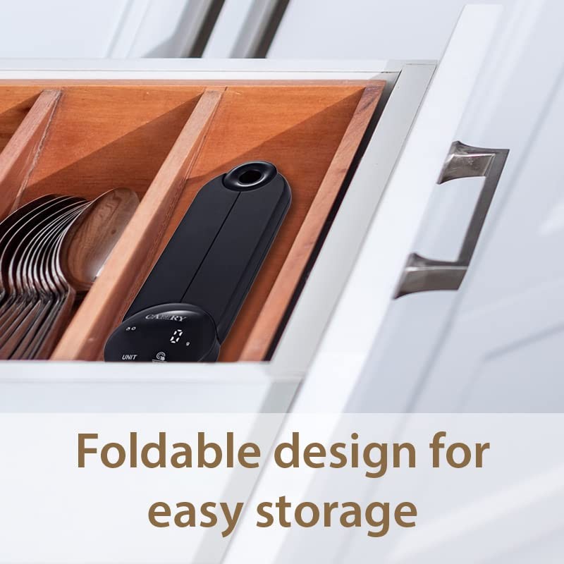 Introducing our innovative digital kitchen scale - the perfect addition to any home cook or baker's toolkit! Our scale is designed with convenience in mind, boasting a foldable and compact design that makes it easy to store and use, even in small kitchens. Accurate and reliable, this digital scale features a high-precision sensor that provides accurate measurements up to 11 pounds or 5 kilograms, making it perfect for weighing ingredients for recipes or portion control. The easy-to-read LCD display shows weight in both metric and imperial units for added convenience. Not only is our digital kitchen scale practical and functional, it also looks great in any kitchen. Its sleek and modern design features a durable tempered glass platform that's easy to clean and maintain. Whether you're a professional chef or a home cook, our digital kitchen scale is an essential tool for anyone who values precision and convenience in the kitchen. So why wait? Add our foldable and small digital kitchen scale to your cart today and take the first step towards perfecting your culinary creations!.